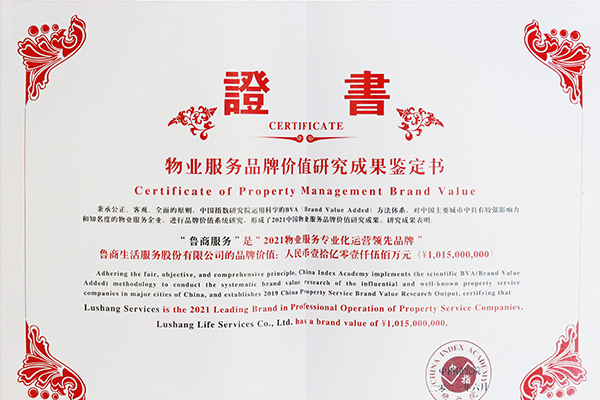 物業(yè)服務(wù)品牌價(jià)值研究成果鑒定書